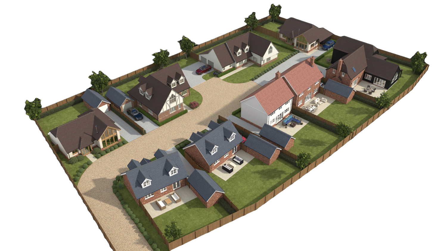 - Mix of 3 and 4 bedroom detached properties of circa 1,500–2,000 sq ft